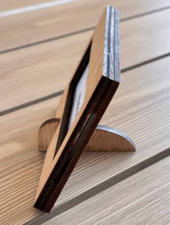 Stable et légèrement incliné grâce à son pied intégré, il assure une excellente lisibilité tout en apportant une touche naturelle à votre présentation.